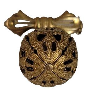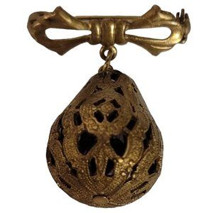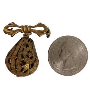 Gold Tone Filigree Pear Shaped Ball Dangle Bow Bar Pin E33