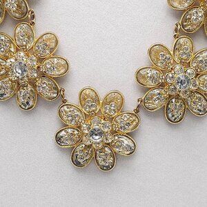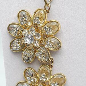 Gold Tone Flower Necklace Matching Crystal Ball Earrings Set