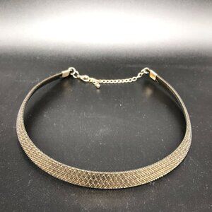 Gold Tone Formed Collar Necklace with Harlequin Design and Black Net Overlay, Goth Steampunk Choker, Fishnet Jewelry for Your Pinup Rockabilly Look