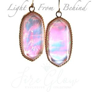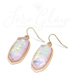 Beautiful gold tone setting frames this iridescent lavender opal color gem, a gorgeous accessory to any look. AVAILABLE IN WHITE OPAL. Pair with an elegant dress for a night out or dress them down for the office. Our Gold Tone Framed Iridescent Lavender Opal Drop Earrings are a stunning addition to everyone's collection. Material: Lavender Opal colored Gem. (Every Gem is unique and iridescent colors and patterns may vary slightly). AVAILABLE IN TWO COLORS.
