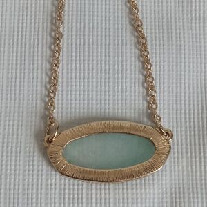 Gold Tone & Green Lightweight Plastic Faux Gemstone Oval Shaped Pendant Necklace