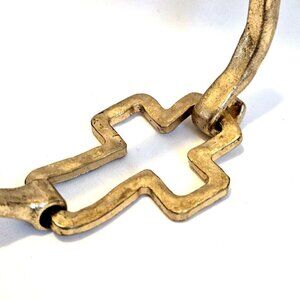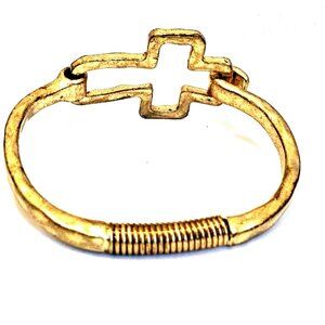 Gold Tone Hammered Cross Coil Spring Hook Bangle Bracelet