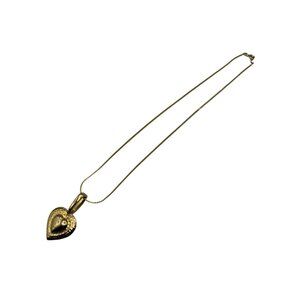 Gold Tone Hammered Heart Pendant Necklace 16 Inch Snake Chain Clasp Detail