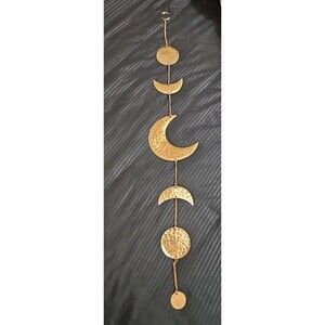 Gold Tone Hammered Metal Celestial Moon Phases Wind Chime Wall Hanging Garland