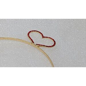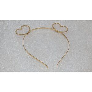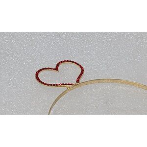 Gold Tone Heart Headband With Red Rhinestones & Double Heart Design