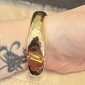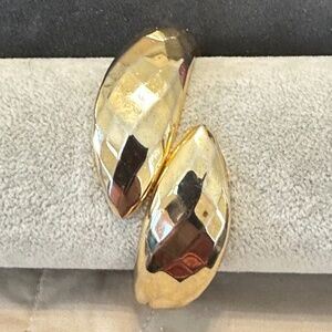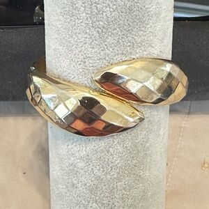 Vintage (1980’s) Gold tone statement piece! Hinged bangle bracelet, faceted bypass design. Hinged design makes it easy to put on and take off by yourself. No marks, stamps or signatures.