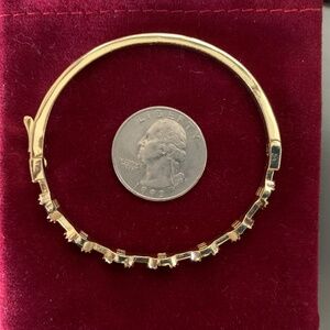 Gold Tone Hinged Bangle Bracelet with Black and Clear Rhinestones – Deco Style