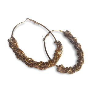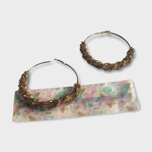 Gold Tone Hoop Earrings Braided Twist Wire Wrapped
