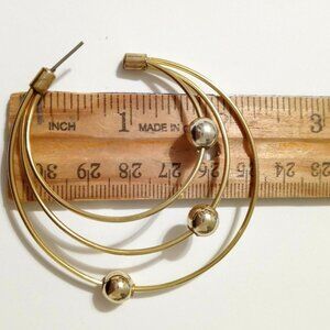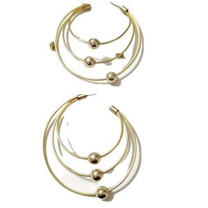 Gold Tone Hoop Earrings Triple Circle Dangle New