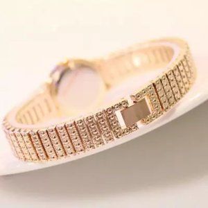 Gold Tone Iced Out Ladies Watch Bling Stones