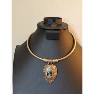 Gold Tone Indian Elephant Torque Pendant Collar Necklace. Measures approximately 17.5 around the neck. Pre-owned, this necklace is in good condition with little wear.