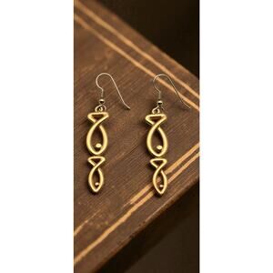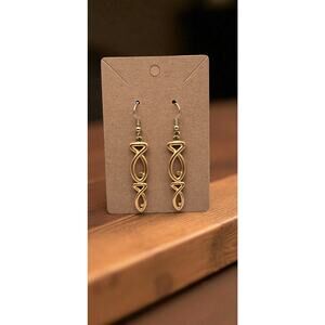 Gold Tone Infinity Design Dangle Drop Earrings Vintage Inspired Lightweight Jewelry