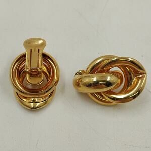 Gold Tone Knotted Clip-On Earrings Vintage Bold Statement Retro Jewelry Loops