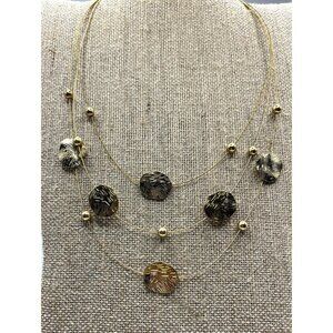 Gold Tone Layered Necklace With Textured Discs/Dots & Beads