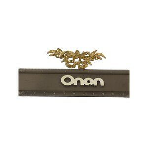 • Gold tone construction • Features leaf and ribbon design • Textured and shiny finish • Secure pin back closure