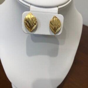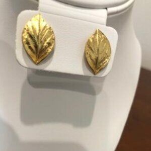 Gold Tone Leaf Stud Earrings Pre-Owned.