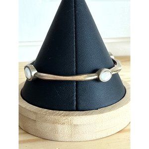 Gold Tone Metal Bangle Bracelet with White and Clear Spacers 8"