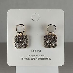 Gold Tone Metal Colorless Rhinestones Pearl Tone Stud Dangle Drop Earrings S925