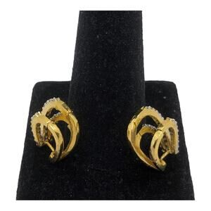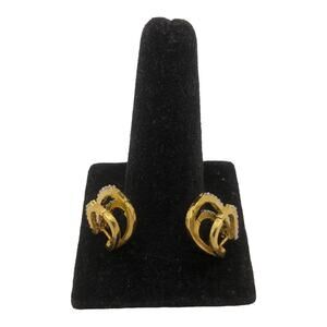 Gold Tone Metal Multiple Rhinestones Multi Loop Glamorous Vintage Post Earrings