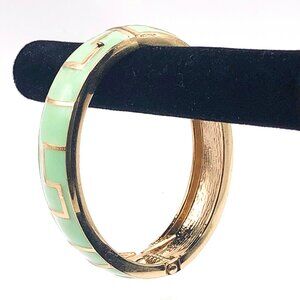 Gold Tone Mint Green Enamel Hinged Bangle Bracelet