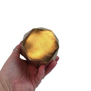 Gold Tone Moroccan Style Cut Out Geometric Boho Candle Holder Jar
