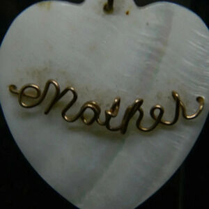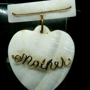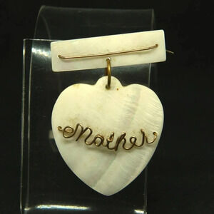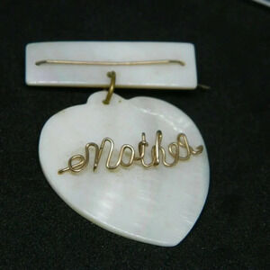Gold Tone Mother Signed Name Pin Brooch Mother of Pearl Vintage