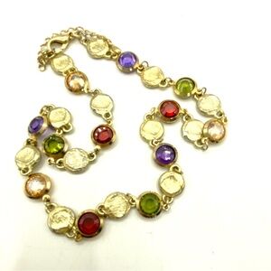 Gold Tone Multi Colored Faceted Glass Bezeled Necklace