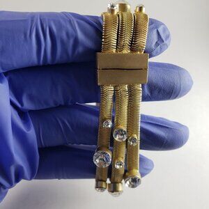 Gold Tone Multi Strand Bracelet with Crystals, and Magnetic Lock