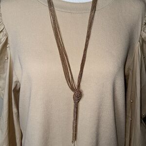 Gold Tone Multi Strand Chain Knot Tie Necklace