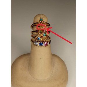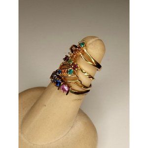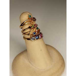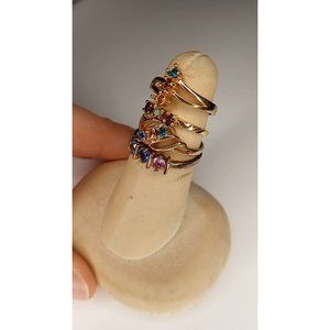 Gold Tone Multicolor Rhinestone Rings Lot of 4 Sizes 5.5, 6, 6.75 & 7.25