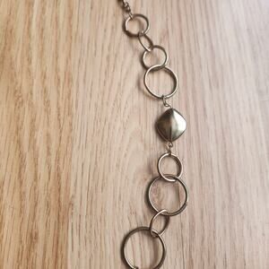 gold tone necklace, circle link necklace, open link chain, long chain necklace, 36 inch necklace, opera length chain, statement necklace, geometric beads, retro style jewelry, costume jewelry women