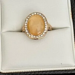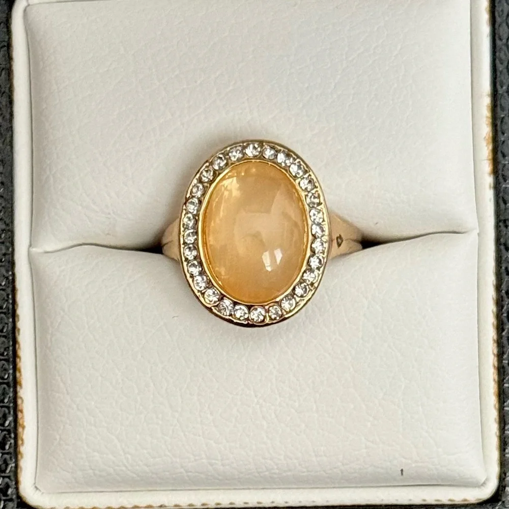 Gold Tone Oval Halo Ring with Honey Stone