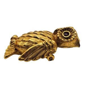 Gold Tone Owl Solid Perfume Pin Vonda Bird Brooch Red Eyes Vtg Nature Inspired