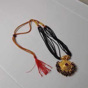 Gold Tone Pendant And Small Black Bead Adjustable Necklace. Check Out My Closet For Other Great Items!!! Thank You For Considering Making A Purchase.