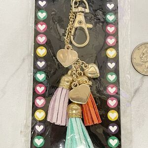 Gold Tone Purple Green Orange Tassel Heart Bag Charm Keychain Keyring