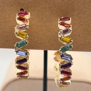 Earrings stones are baguette cut C hoop pierced earrings. Measures 1.25"