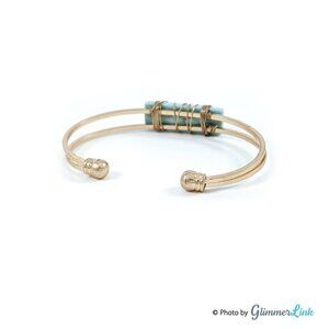 Gold Tone Rectangular Wrapped Stone Cuff Bracelet