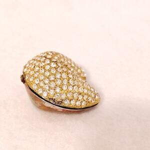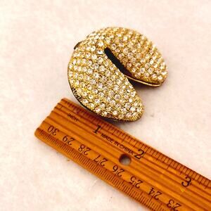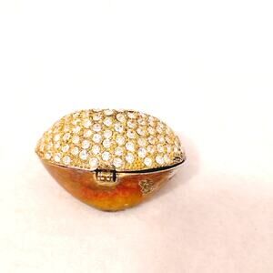 Gold Tone Rhinestone Bling Fortune Cookie Hinged Pill Trinket Box Blue Interior