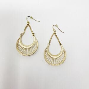 Gold Tone Rhinestone Dangle Drop Earrings Open Work Fashion Costume Statement