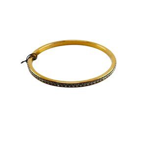 Add a touch of elegance to any outfit with this stunning gold tone rhinestone bangle bracelet. Featuring a classic hinged design, this fashion accessory sparkles with a full row of clear rhinestones along the outer edge. The secure clasp makes it easy to wear while offering a refined and timeless look perfect for both everyday wear and special occasions. Ideal as a gift or to elevate your own jewelry collection.