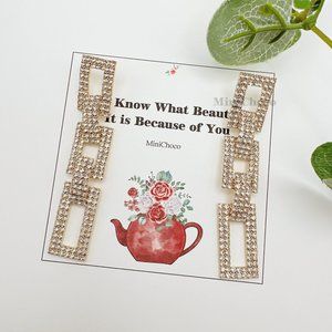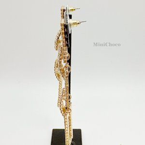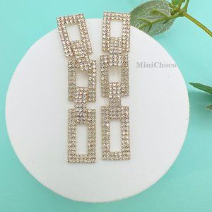 Gold Tone Rhinestone Rectangle Chain Link Earrings