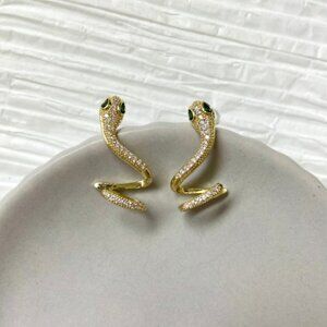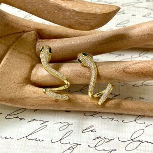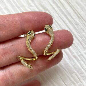 Gold Tone Rhinestone Snake Serpent Stud Drop Earrings
