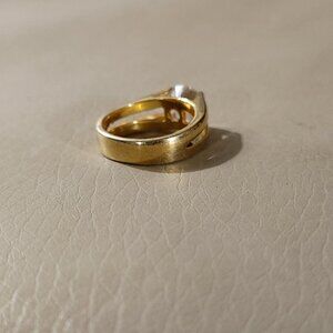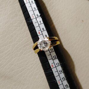 Gold Tone Ring 18KT GE 8mm Round Clear Simulated Diamond Center Stone