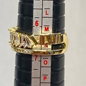 Gold Tone Ring With Angled Rhinestone Chips Open Ended Adjustable
