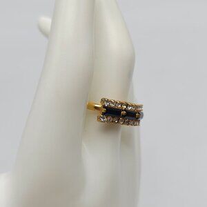Gold Tone Ring With Black & Clear Crystal Rhinestones Vintage Cocktail