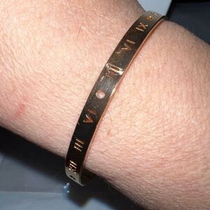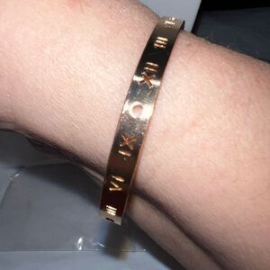Gold Tone Roman Numeral Skinny Cuff Bracelet