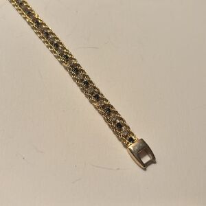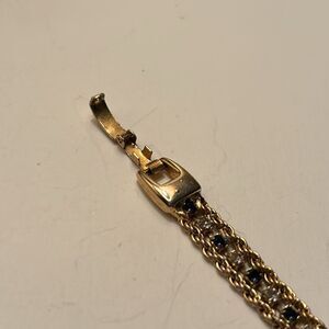 Gold Tone Rope Bracelet with Bezel set dark blue and clear stones
