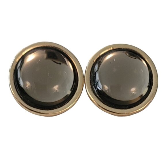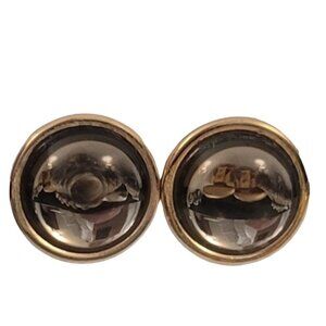 Gold Tone Round Glass Champagne Cabochon Clip On Earrings E842