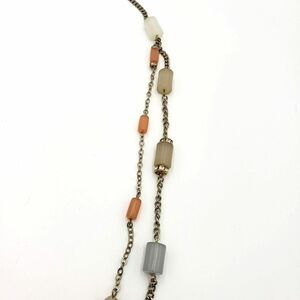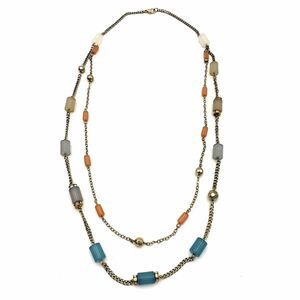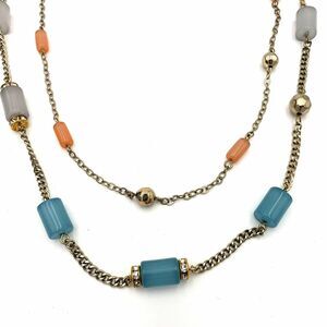 Gold Tone Satellite Cylinder Bead Necklace Blue Pink Green Gray Double Chain