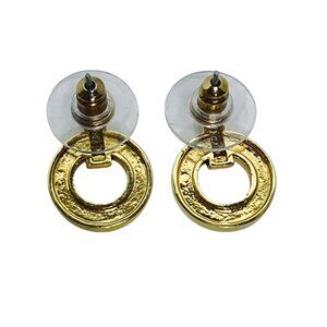 Stylish and durable, this gold-tone snake chain necklace and pierced earrings feature a rhinestone accented circular pendant with intricate detailing, suitable for formal or casual styling.